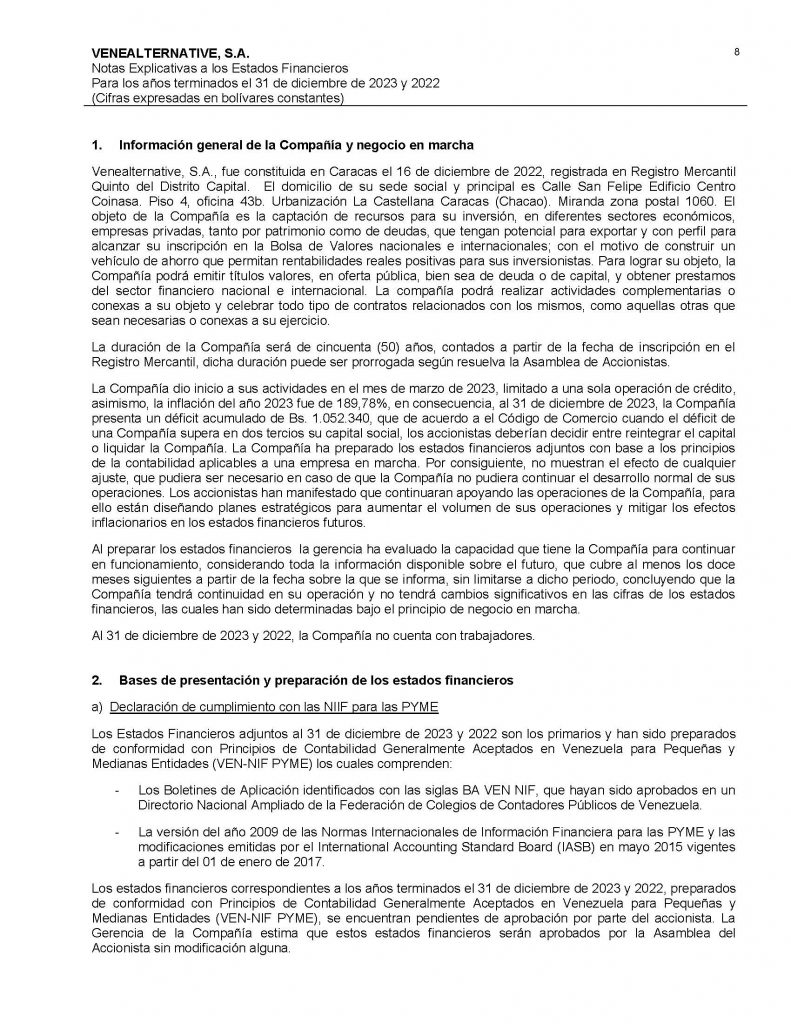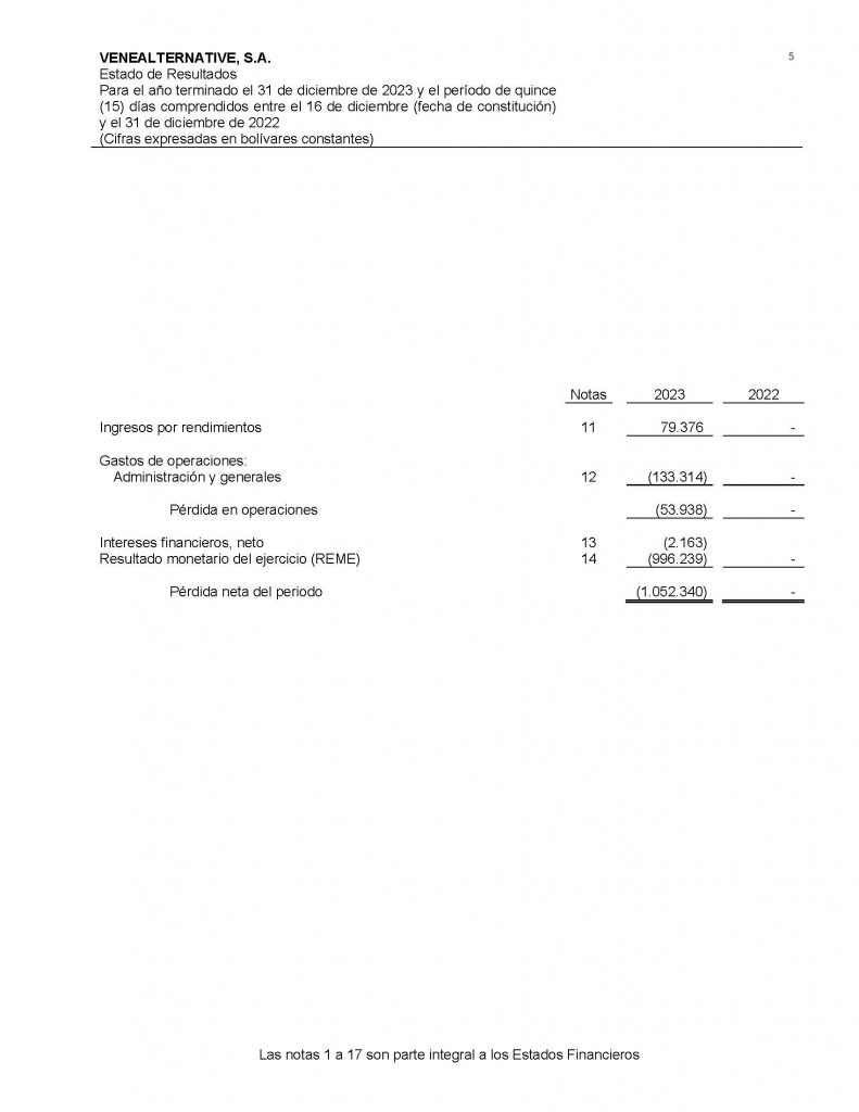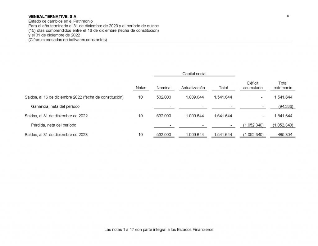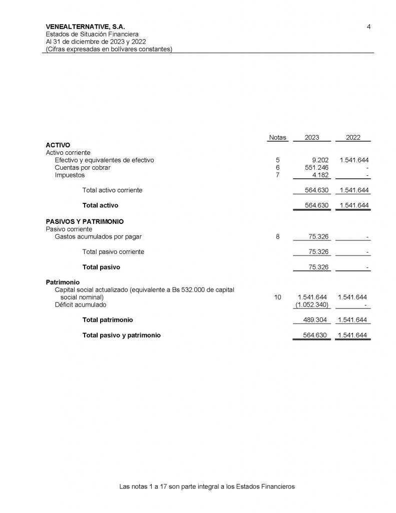 VENEALTERNATIVE, S.A. ESTADOS FINANCIEROS AL 31 DE DICIEMBRE DE 2023 (AUDITADOS)